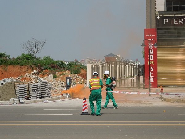 本次演練假想第三方在道路綜合改造施工過程中采用挖掘機進行開挖取土,不慎將地下燃氣管道挖破,造成管道燃氣大量泄漏,泄漏現場有火星出現,引發燃氣著火事故。公司在接到現場負責人員報警后,迅速啟動事故應急處置預案,各救援小組在事故應急指揮部的指示下,緊張而有序地開展應急處置工作,整個演練過程各司其職、忙而有序:安全警戒、治安維護、火災消除、管網搶修、燃氣復供,演練歷時30分鐘。