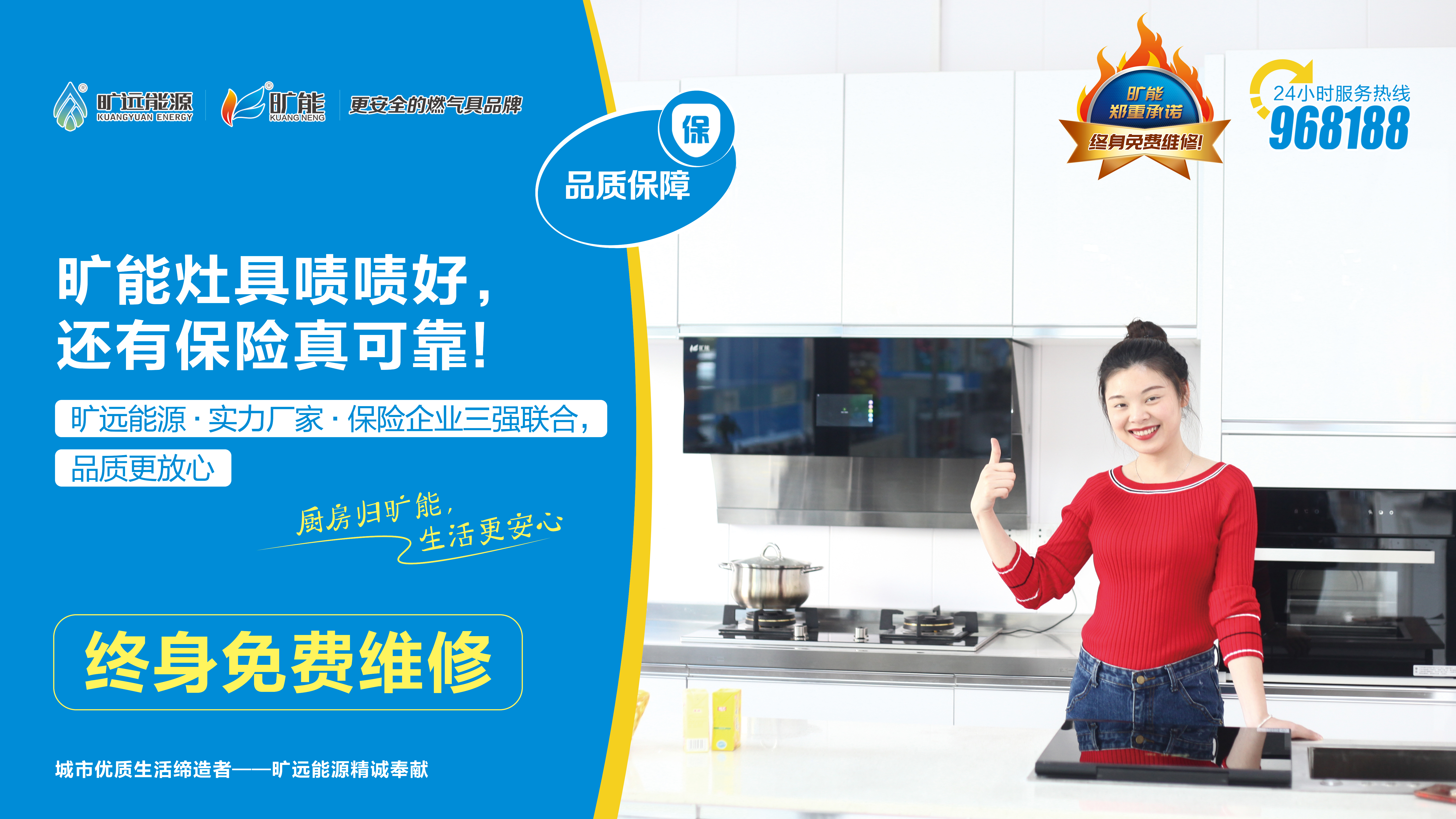 曠能是曠遠能源旗下的高品質燃氣具品牌,我們的服務承諾是終身免費維修。我們終身免費維修的底氣則來自于我們對品質、安全和服務的保障。