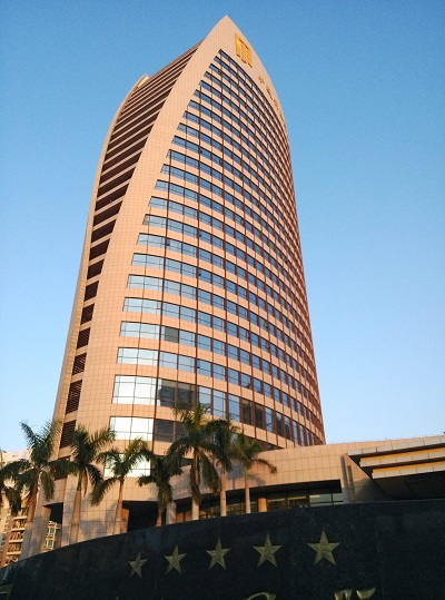 作品文字說(shuō)明:陽(yáng)光明媚的天氣,萬(wàn)里無(wú)云的藍(lán)天下曠遠(yuǎn)錦江國(guó)際酒店。